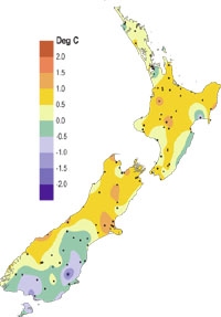 Difference from the average air temperature in degrees Celsius for May 2004. (Click to enlarge)