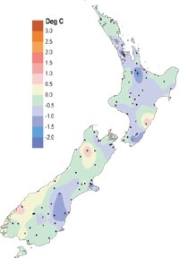 Difference from the average air temperature in degrees Celsius for October 2003. (Click to enlarge)