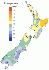 Difference from average air temperature in degrees Celsius for October 2004. (Click to enlarge)