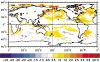 Difference from average global sea surface temperatures for August 2005. Map courtesy of NOAA/Climate Diagnostics Center.