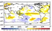 Difference from average global sea surface temperatures for December 2006. Map courtesy of NOAA Climate Diagnostics Centre. Positive temperature anomalies in the equatorial eastern Pacific peaked in December. Note the cool seas around New Zealand.