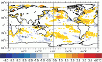 Difference from average global sea surface temperatures for July 2005. Map courtesy of NOAA/Climate Diagnostics Center.