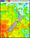 Difference from normal December surface temperatures in the seas around New Zealand.