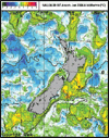 Difference from normal June surface temperatures in the seas around New Zealand.