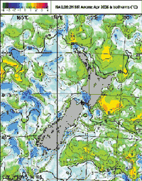 Difference from normal surface water temperatures (SSTs) in the seas around New Zealand. The New Zealand average SST was about +0.8 °C higher than normal in April, up slightly from March.