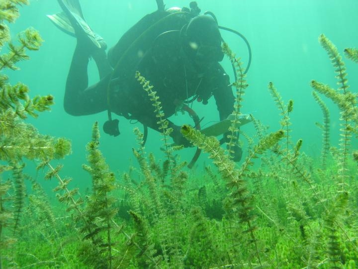 Diver carrying out survey in Lake Waikaremoana. Credit: John Clayton