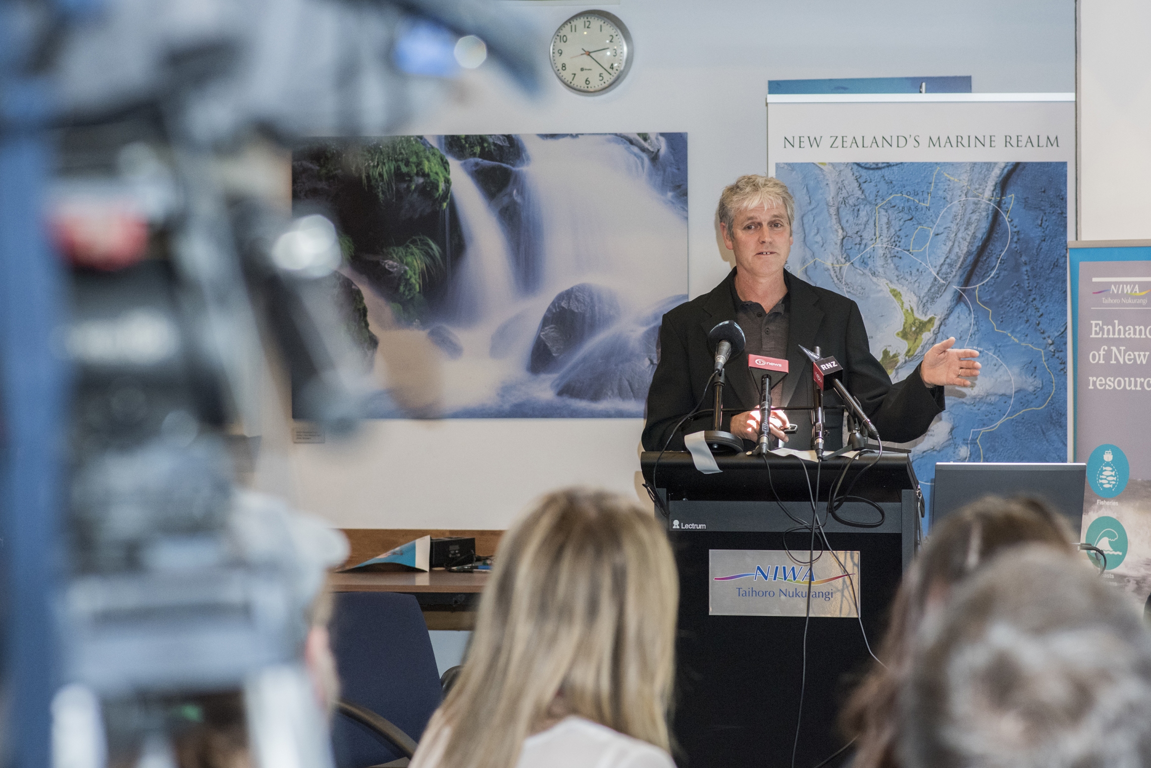 Voyage leader and NIWA marine geologist Dr Philip Barnes at today's media briefing at NIWA Wellington.