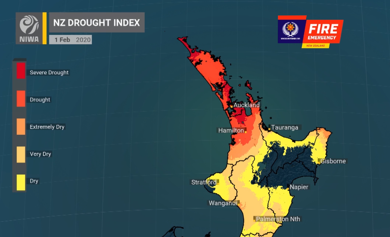 Drought Auckland Region Map - Feb 2020