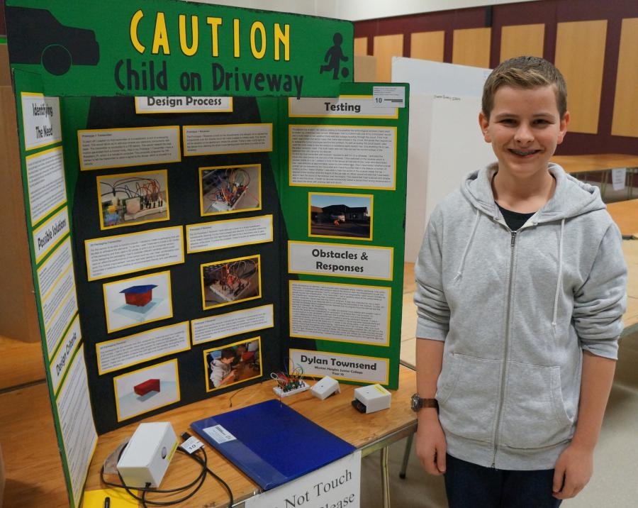 Dylan Townsend and his entry in the Manukau Science and Technology Fair, 2014.