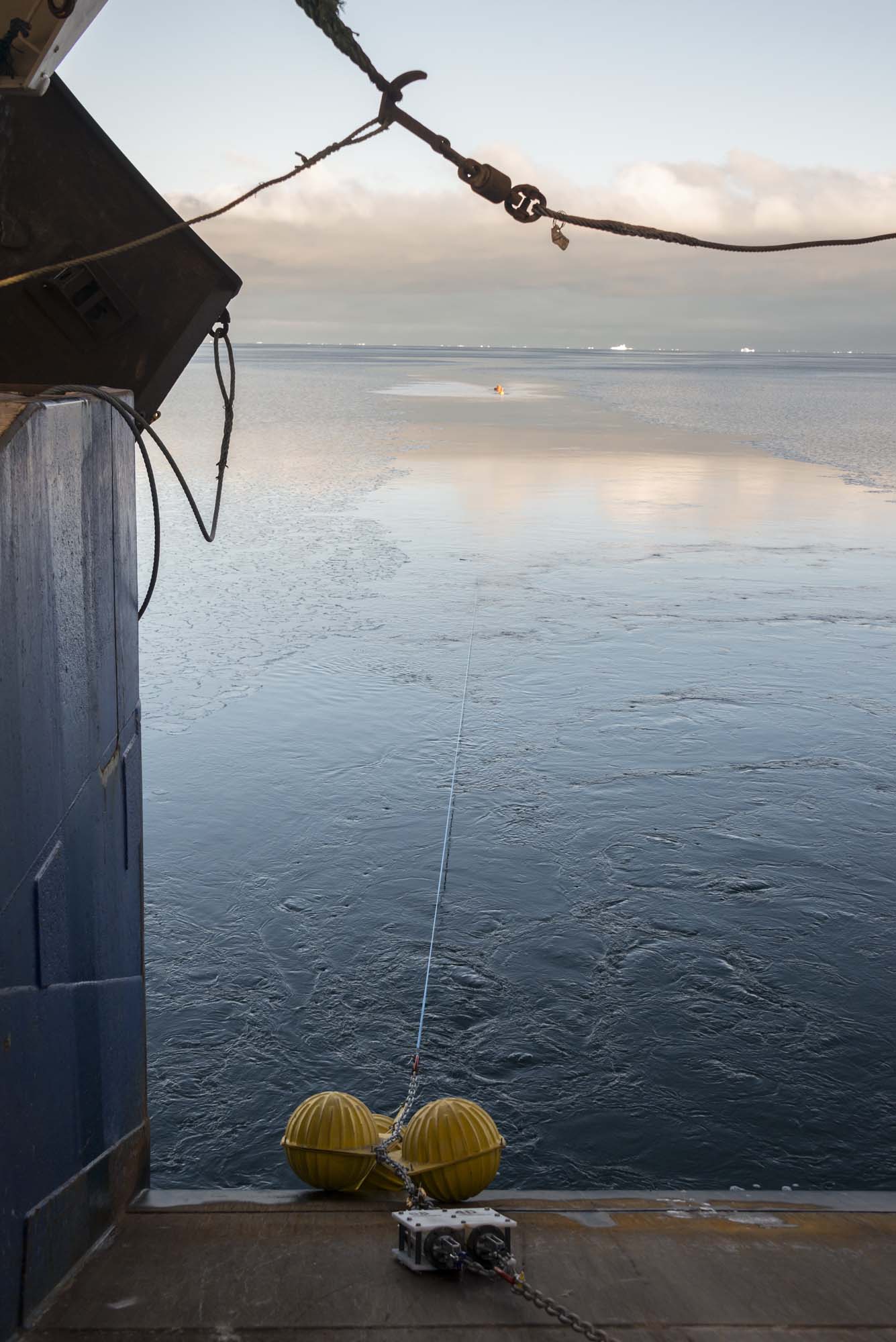 An echosounder is deployed at Terra Nova Bay to help in our understanding of silverfish movements over winter. Photograph by Dave Allen on 21 February 2015.