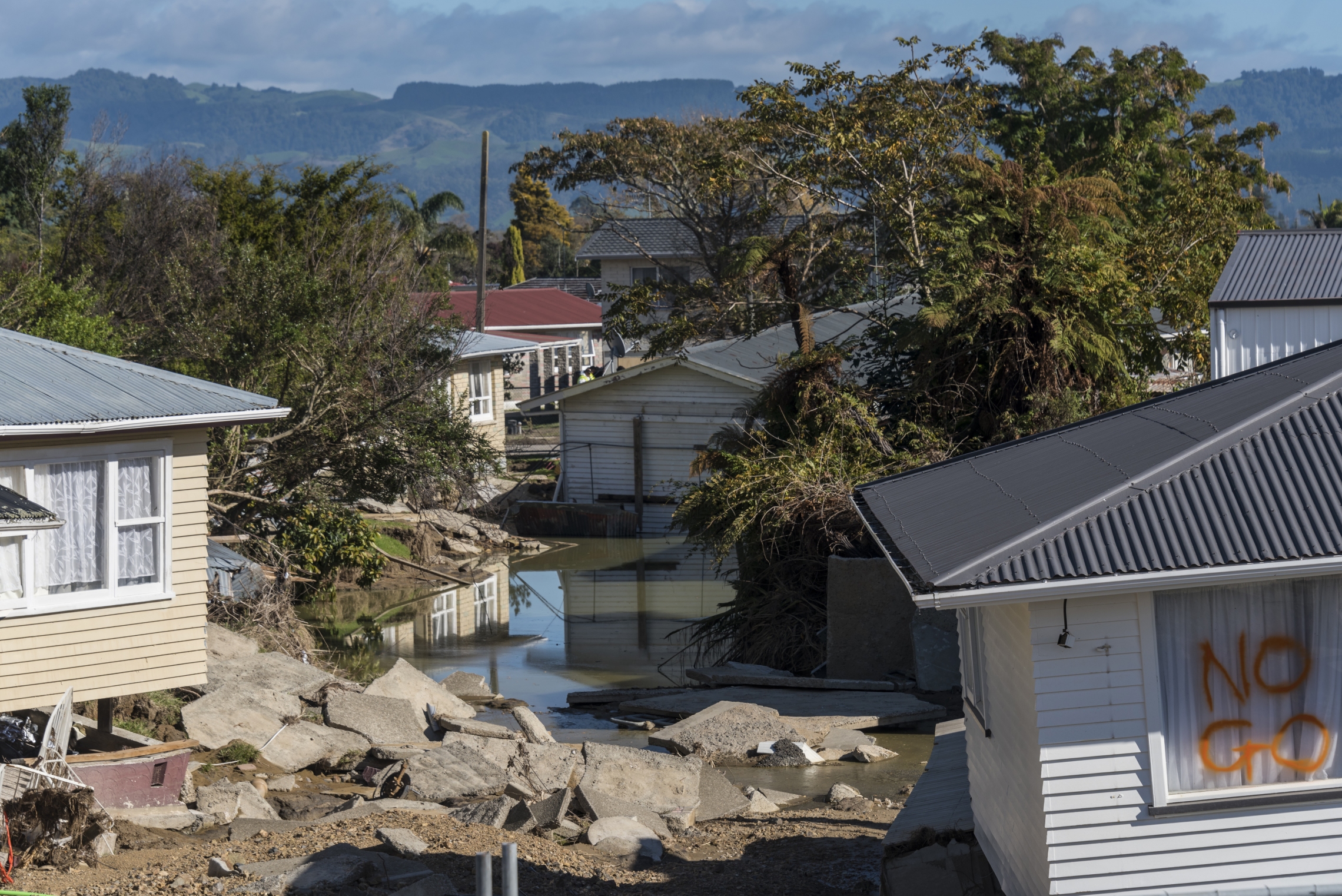 Houses damaged in the 2017 Edgecumber floods after cyclone Debbie swept through the Bay of Plenty.