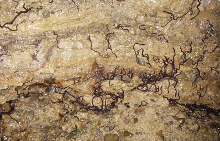 Elvers climbing up a damp rocky surface. Credit: Jacques Boubée
