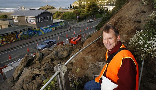 Many of the tools in the Toolbox are designed for Engineers. This image shows engineer Mark Yetton at work above the slip on The Spur, Sumner (26 May 2009).