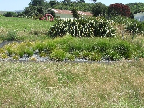 Established constructed wetland plantings.