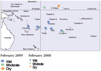 Estimated soil moisture conditions at the end of February 2009, using monthly rainfall data.