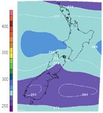 Examples of the forecasts of ozone thickness for New Zealand that are published daily on the NIWA web site.