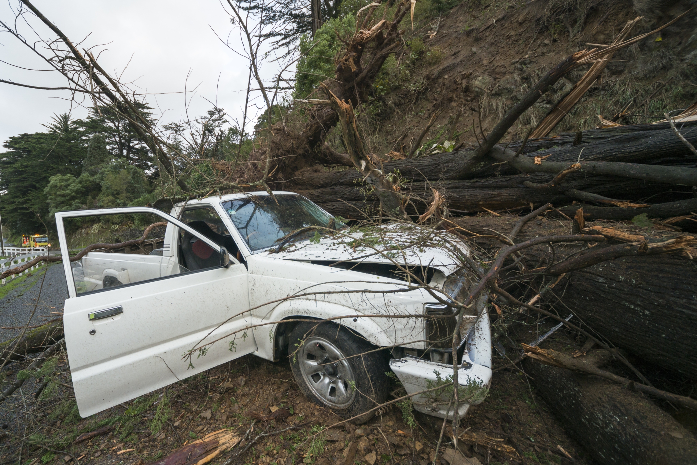Tree falls on car during storm, Middleton Road, Johnsonville. Photo by Dave Allen on 21 June 2013.