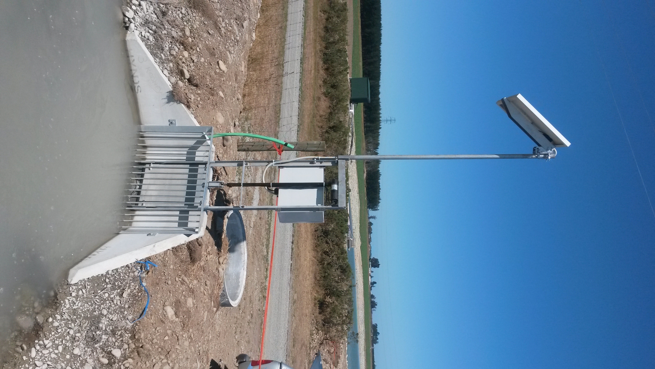 A typical automatic, flow-targeted control gate, taking water from a race to deliver to a downstream farm.
