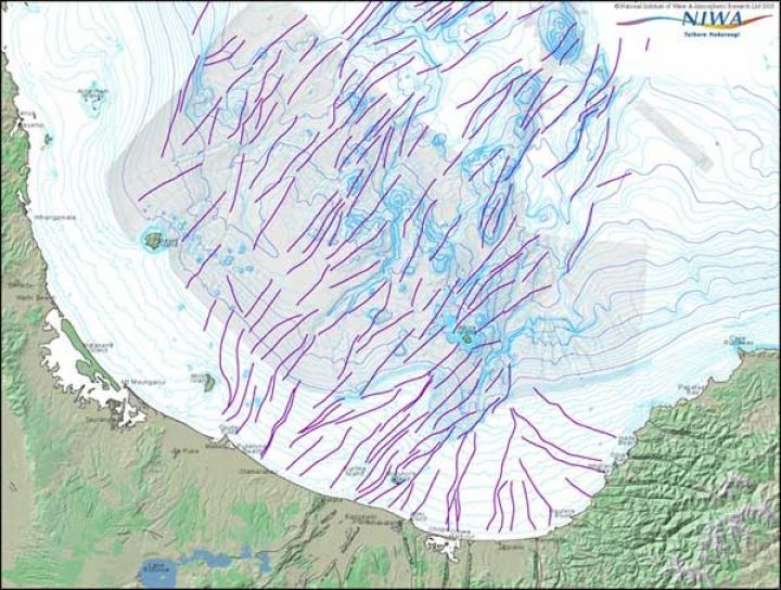 NIWA's new map of offshore earthquake sources in Bay of Plenty.