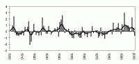 Figure 1. SPCZ Position Index (SPI; normalised Suva minus Apia pressure difference), November - April. Positive values indicate displacement toward Apia and negative values toward Suva.