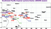 Figure 2. Southwest Pacific tropical cyclone tracks: for the 2005-06 season (including 'Kate').