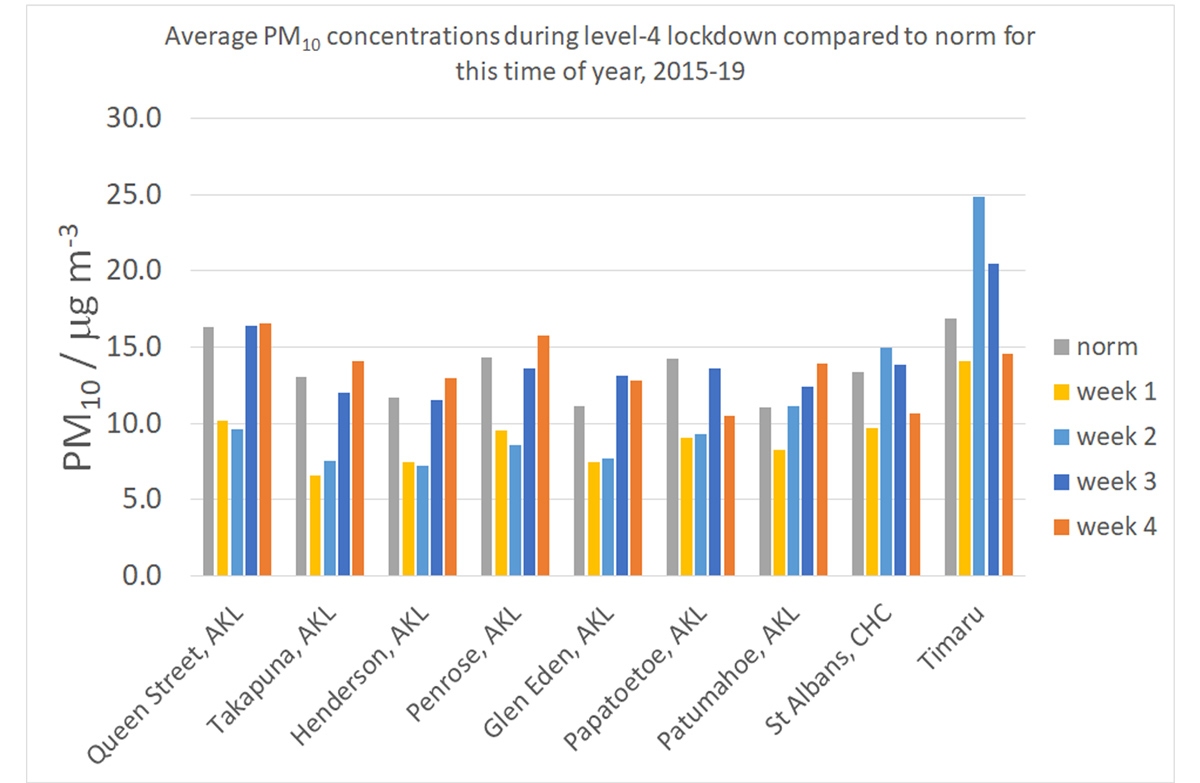 Figure 2: Week-average PM10 concentrations compared to the norm for this time of year (based on 2015-2019)