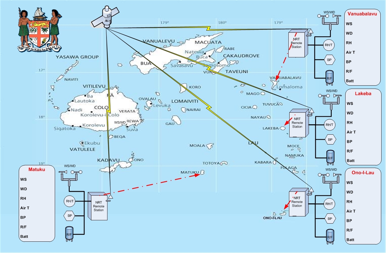 <p>Map of Fiji and outer islands, showing the locations of the weather stations.</p>