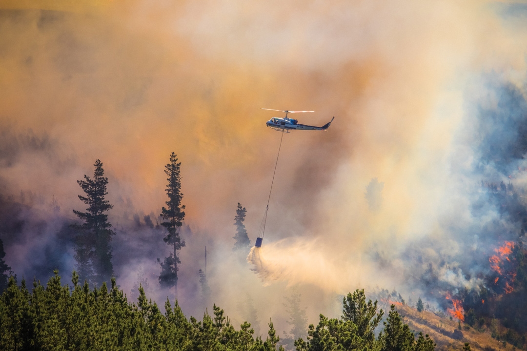 Helicopters with monsoon buckets dump water on fires on Christchurch's Port Hills. Better information on weather conditions significantly improved firefighters ability dowse the flames.