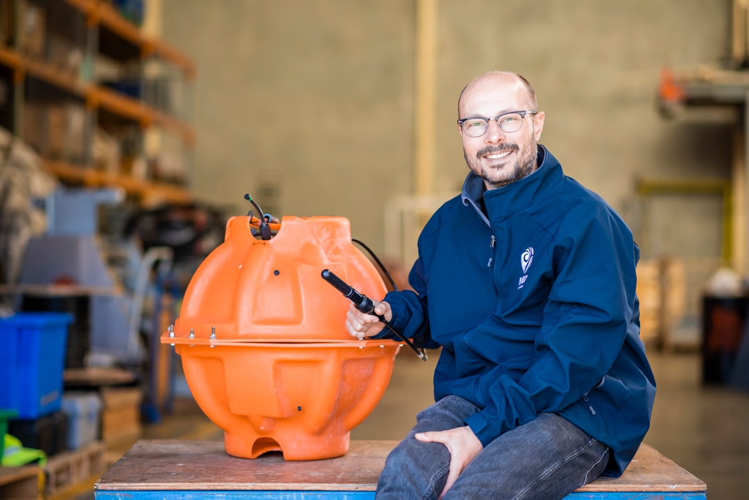 Marine mammal acoustician Giacomo Giorli with a passive acoustic monitor.