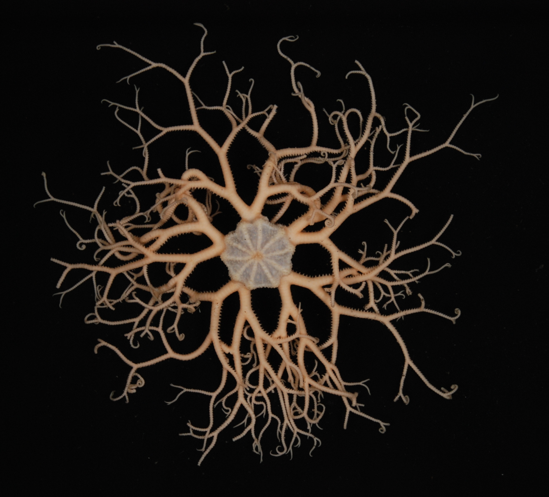 A beautiful and fragile Antarctic basket star (Gorgonocephalus chilensis) collection from around 500m depth around Scott Island, north of the Ross Sea. Being a juvenile, the animal is about 12 cm across.