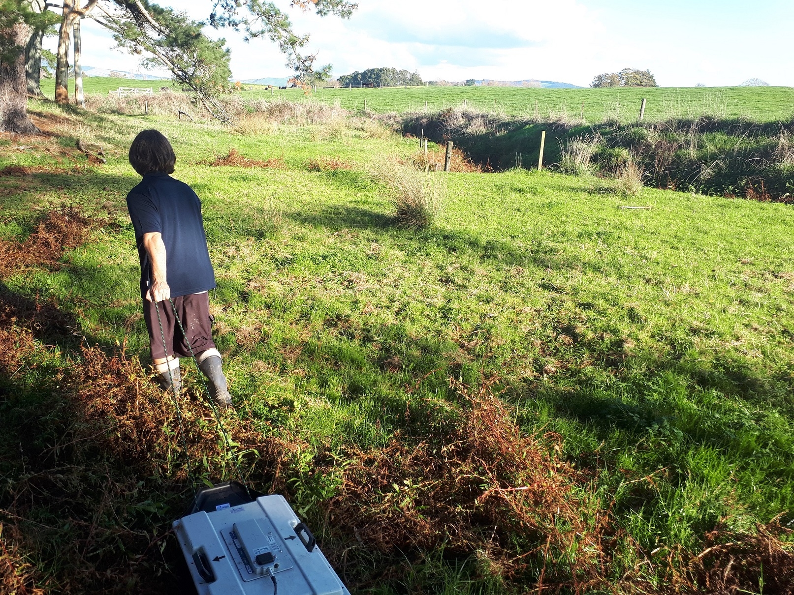 John-Mark towing the GPR on one of the dozens of transect lines crisscrossing the paddock.