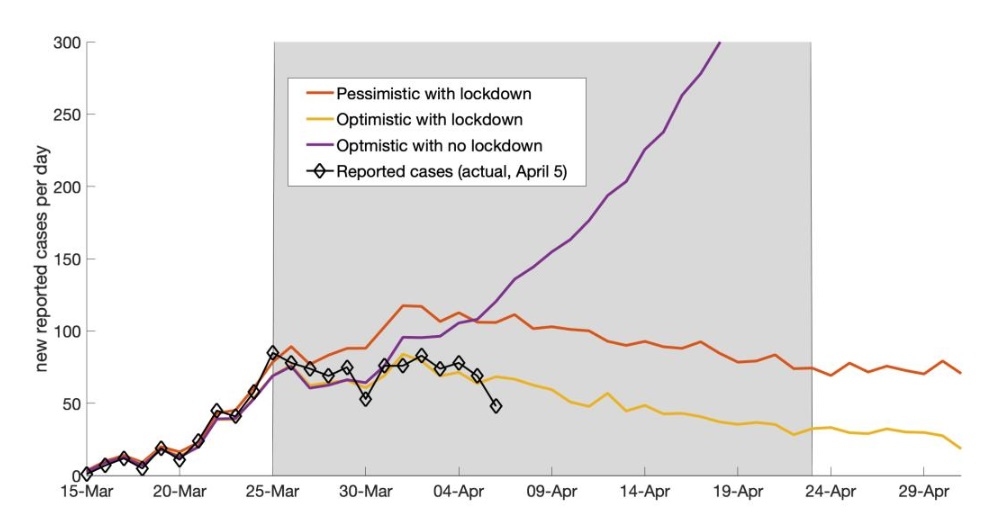 Modelling the effectiveness of the Level 4 lockdown on new COVID-19 cases (Plank et al., 2020).