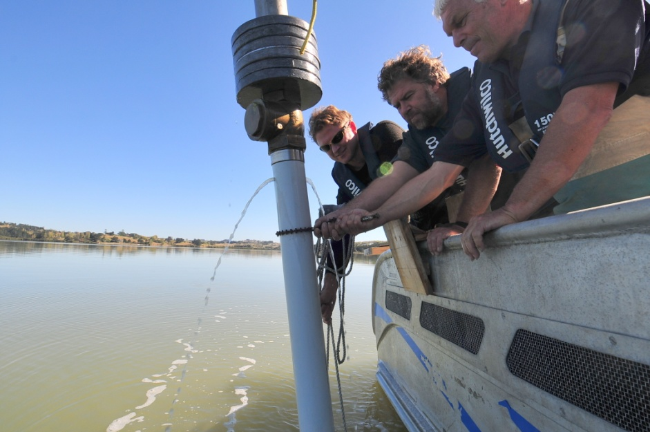 Fig 1: NIWA scientists collecting sediment cores in the Kaipara Harbour using a gravity corer (March 2010). The spatial patterns and rates of sedimentation in the harbour over the last 150 years were determined from detailed analysis of these sediment cores. Credit: Rod Budd