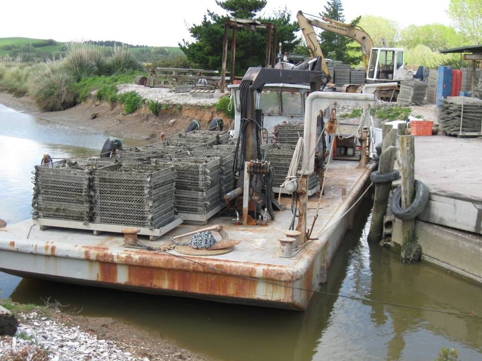 Harvesting barge ready for unloading (Clevedon Coast Oysters). (Photo: Mal Green)