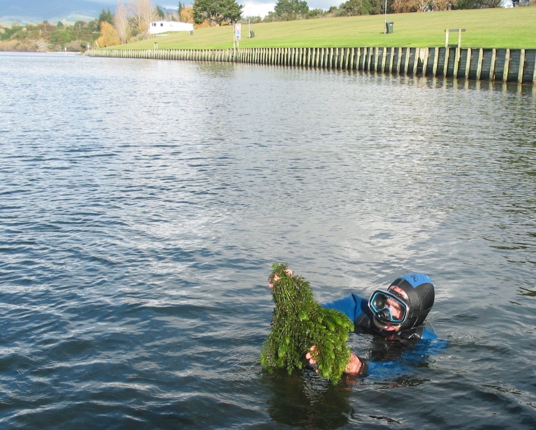 Figure 2. Healthy plants of Ceratophyllum demersum are collected by a diver. Credit: Fleur Matheson
