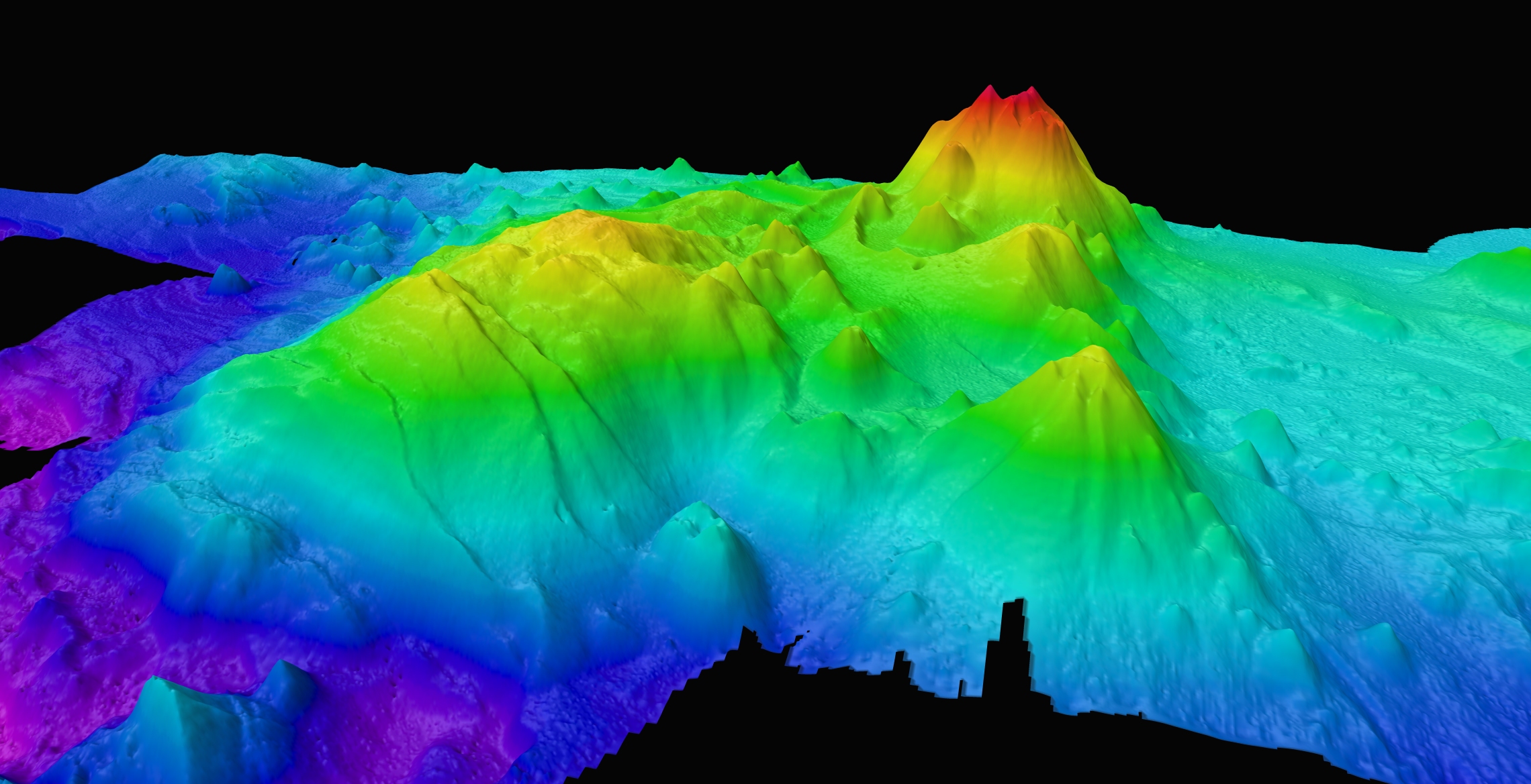 The Hinepuia Seamount on the Kermedec Arc, as revealed by Tangaroa’s seabed mapping technology.