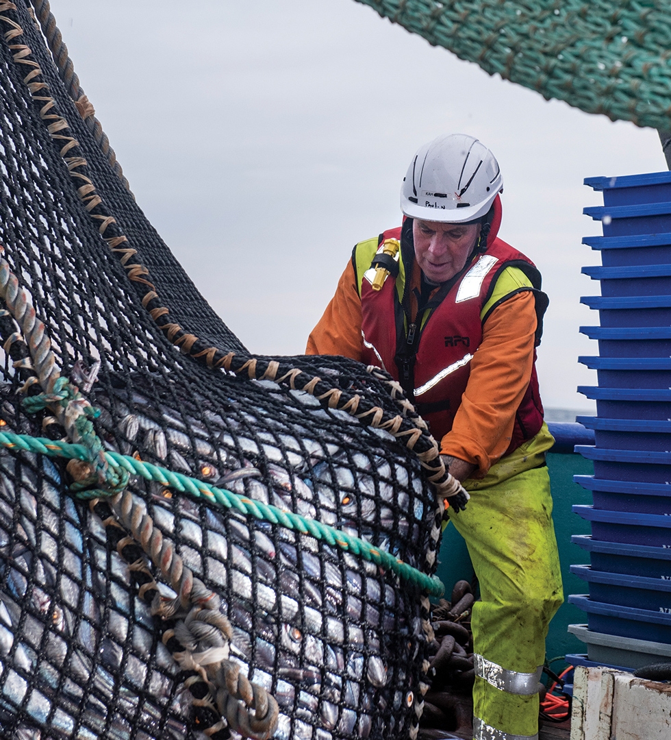 Kaharoa hoki fisheries survey voyage to Pegasus Canyon, crew bringing in the trawl net, 2019.