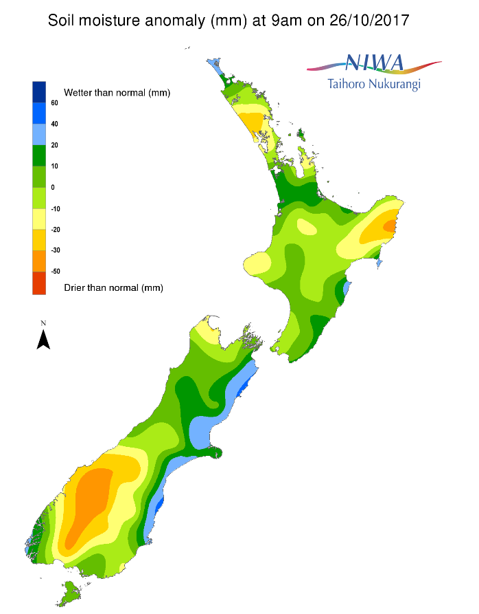 Soil moisture anomaly (mm) at 9am on 26/10/2017