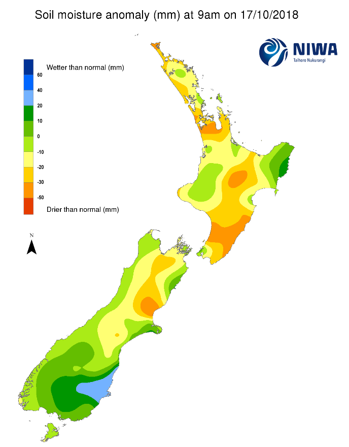 Soil moisture anomaly (mm) at 9am on 17/10/2018