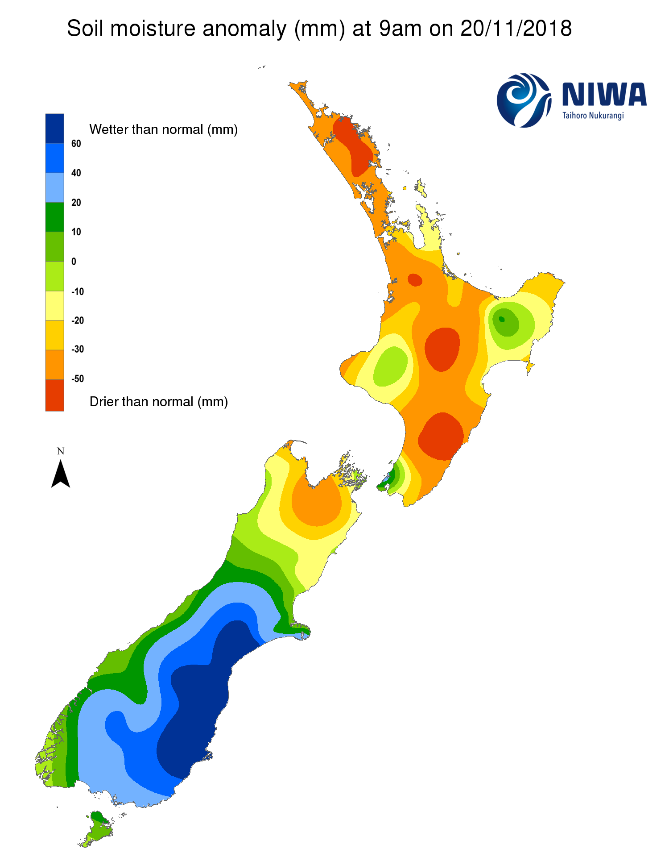 Soil moisture anomaly (mm) at 9am on 20/11/2018