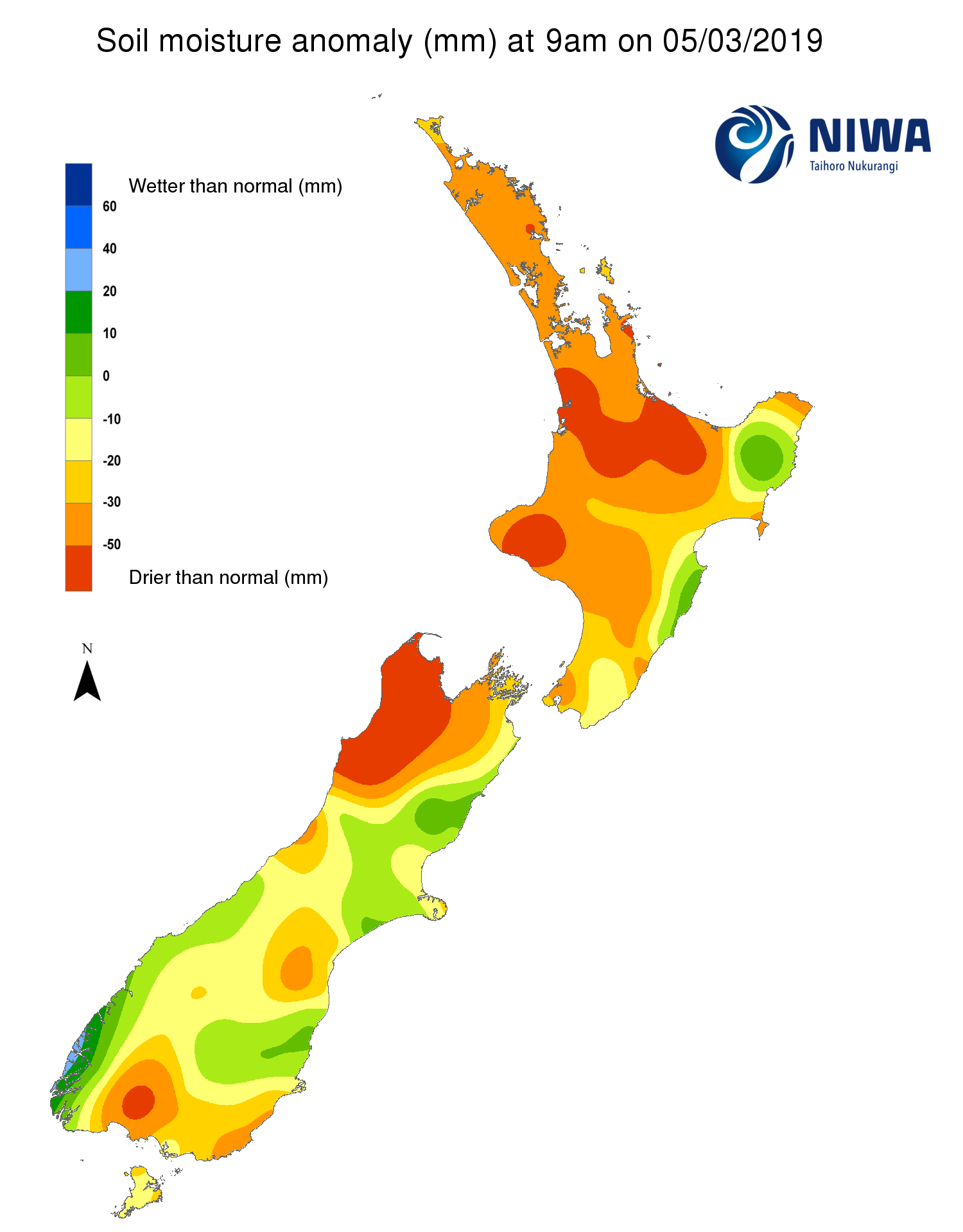 Soil moisture anomaly (mm) at 9am on 5 March 2019