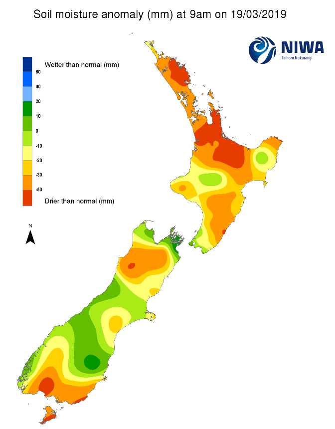 Soil moisture anomaly (mm) att 9am on 19/3/2019