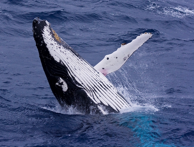 A humpback whale breaching.