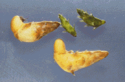 Hydrilla tubers and turions (small, green). Click on image for enlargement. (photo by J. Clayton)