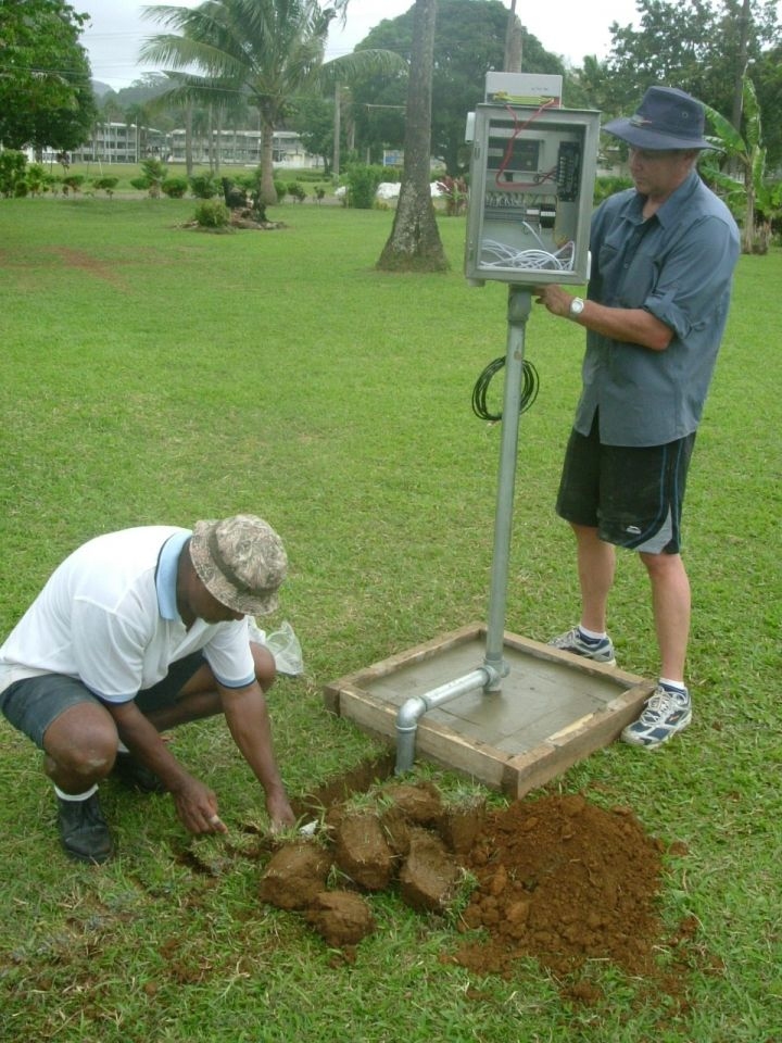 Andrew Harper and Waisiki Tabua install a rainfall station at Lodoni, on the East Coast of Viti Levu.