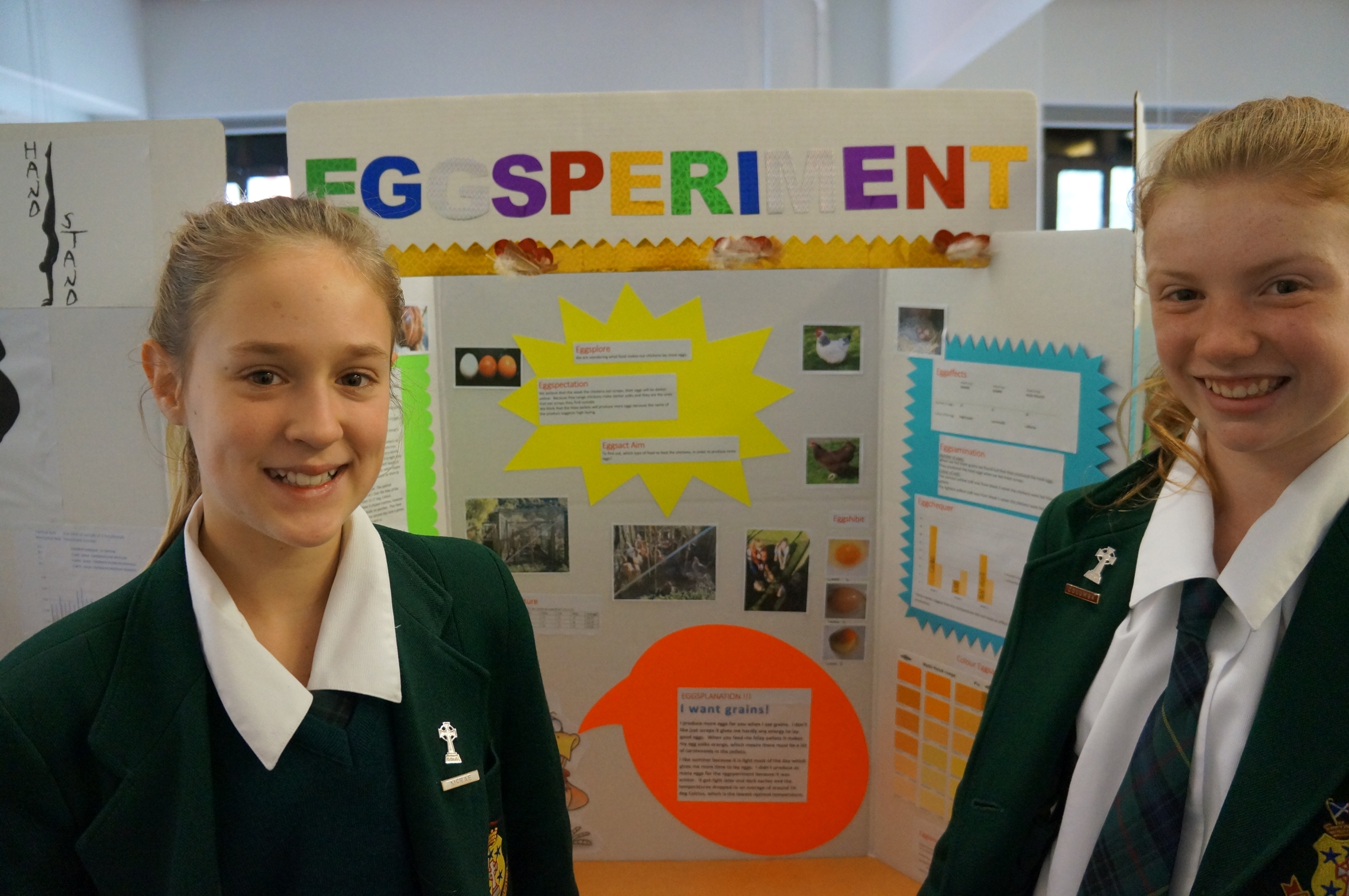 Isabelle Rothwell and Ariana Simmons with their project 'Eggsperiment'. Testing which food makes chickens lay more eggs.