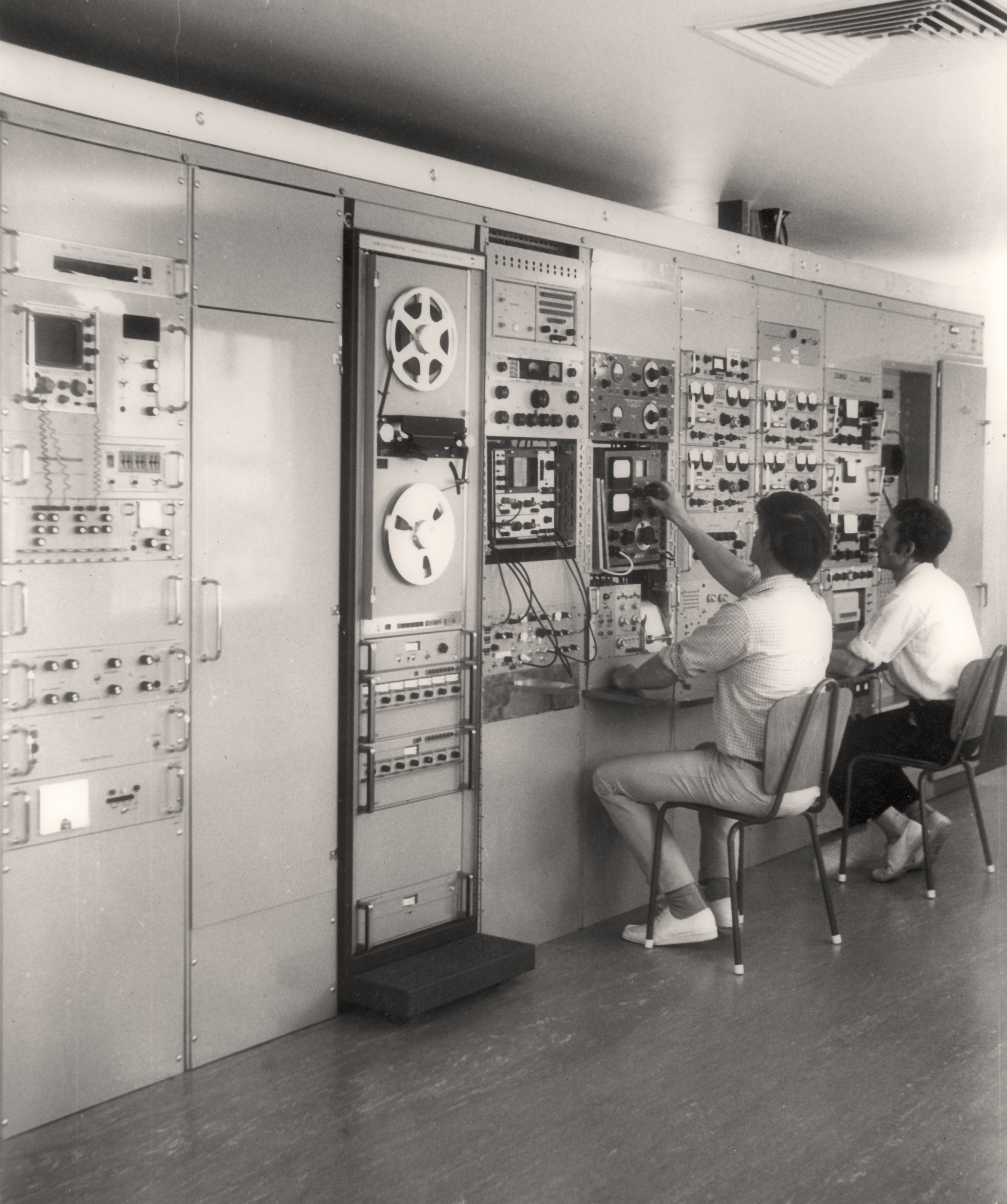 ISIS satellite telemetry. Pat Helm & Alan Cresswell take a satellite “ pass” at Lauder 1974.
