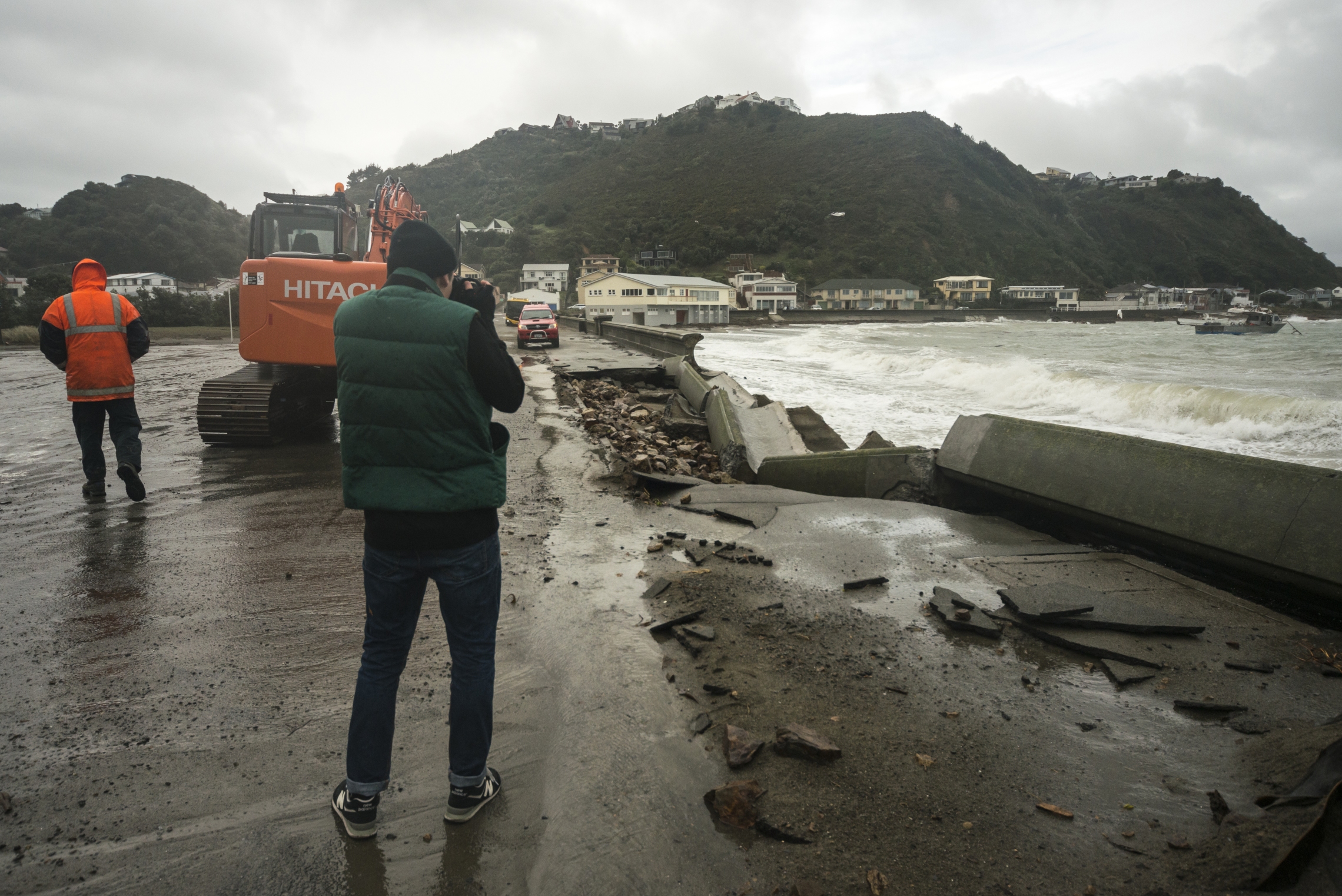 Large waves destroy the sea wall and footpath, Island Bay, Wellington. Photo by Dave Allen on 21 June 2013.