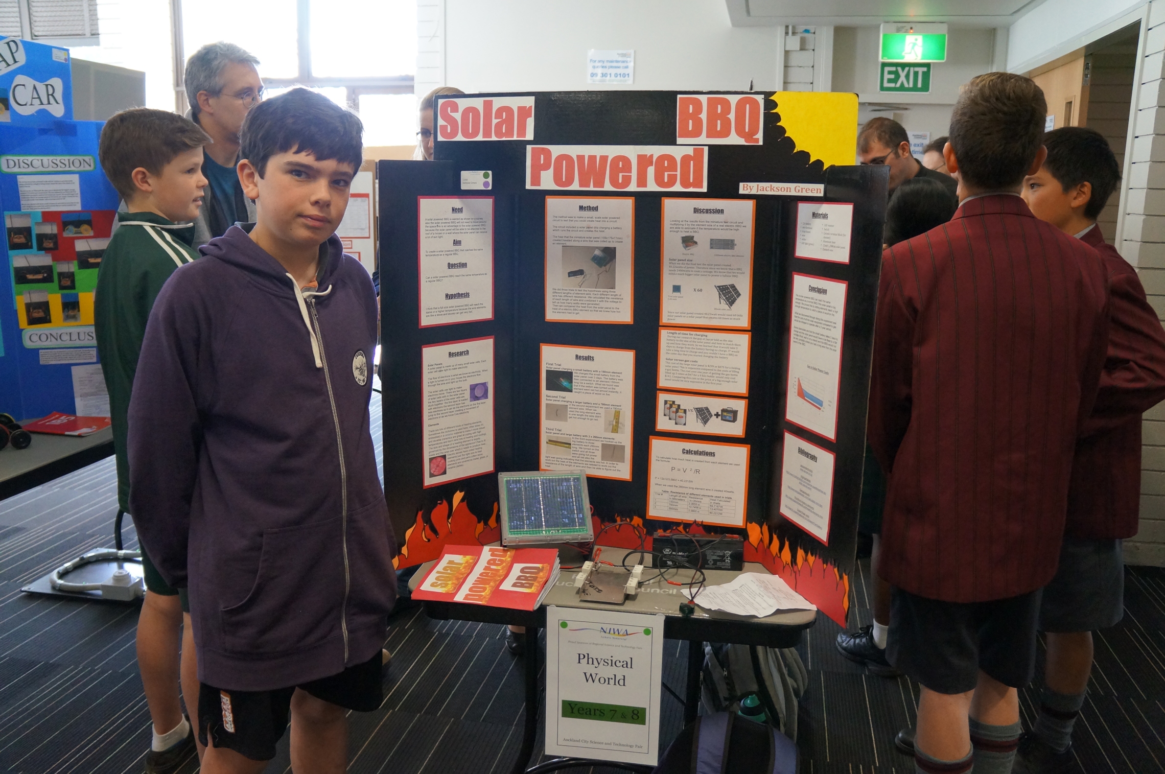 Jackson with his project: Solar powered BBQ. Jackson invented a BBQ powered by the sun! The battery stores solar energy during the day for the BBQ at night time.