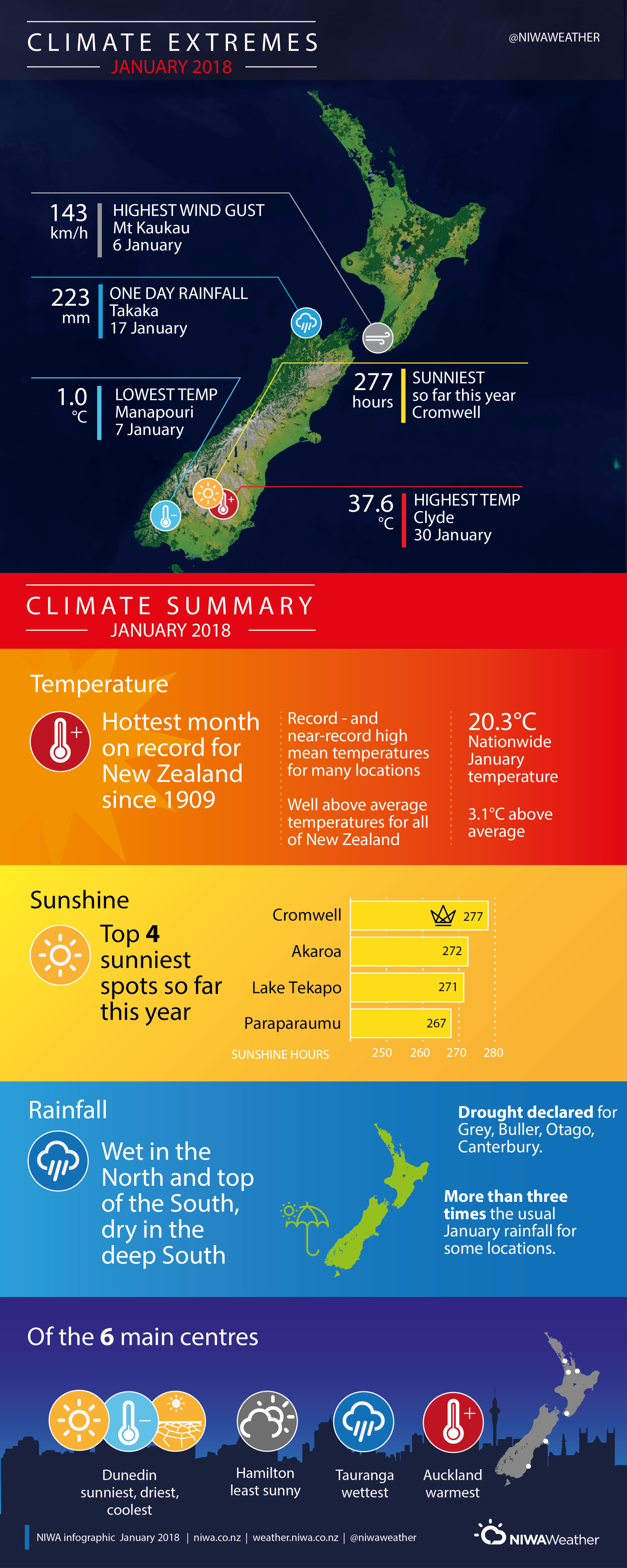 January 2018 New Zealand climate summary and extremes